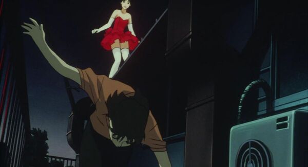 Один из классических примеров сюрреалистических сцен — «Паприка», где пространство становится текучим, изменчивым и полностью подчиненным эмоциям героя. Это создает ощущение сна, галлюцинации или психологической дезориентации.