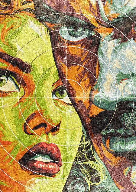 Сгладить впечатление помогает то, что взгляд героя слева направлен в камеру, мимо девушки, а справа выражения лиц пары, скорее, осуждающие и изумленные. В то же время прослеживается тенденция того, что если в композиции присутствует девушка, то именно ее образ будет самым вызывающим.