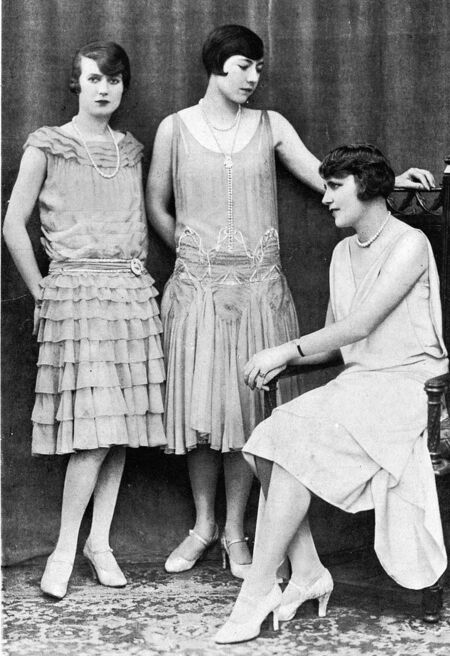В этот период появился новый идеал — озорная и дерзкая девушка андрогинного типа, «флэппер» — с мальчишеской фигурой, плоской грудью и короткой стрижкой «боб». Чтобы спрятать грудь, женщины носили утягивающие бюстгальтеры и одежду, скрывающую изгибы. В это время впервые в истории женщины отказывались подчёркивать свою женственность. Платья стали короче, плечи оголялись — двигаться и танцевать в таких нарядах было куда проще. Главным символом модной революции 1920-х стал отказ от корсета. В предыдущие эпохи женское тело было инструментом для демонстрации статуса, его форма диктовалась одеждой: туго затянутая талия, гипертрофированные бедра и бюст. 1920-е годы провозгласили: «тело должно быть свободным, а одежда должна следовать за телом, а не формировать его». Талия исчезла. Платья имели прямой, трубчатый крой, а линия талии была опущена до бедер или вовсе отсутствовала.