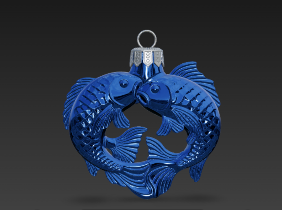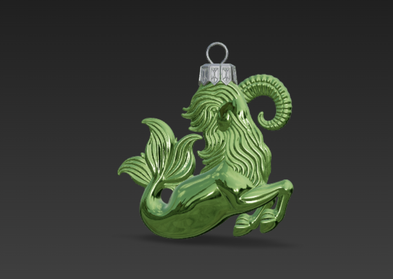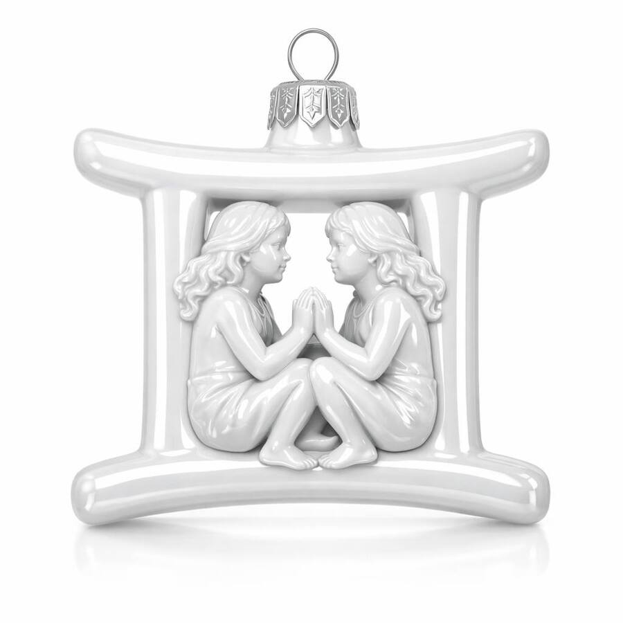 «Generate an image of a Christmas tree toys in the shape of the [zodiac sign], with detailed features, in the color of the [element’s color], glossy finish, 3D model on a white background, pearlescent sheen, white background, realistic image.»