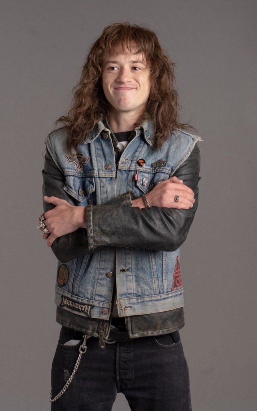 На его джинсовке запечатлены популярные хэви-метал группы того времени: DIO, Iron Maiden и Megadeth.