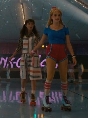 Все участники одеты соответствующе: в роликах, высоких полосатых носках, коротких шортах и ярких топах. Они катаются под американский поп.