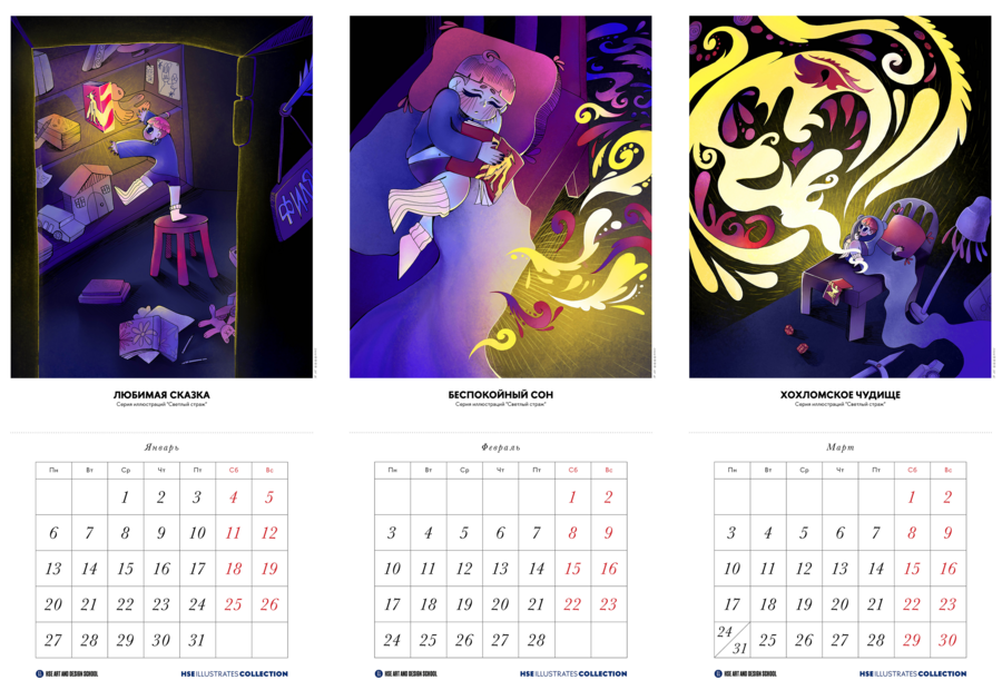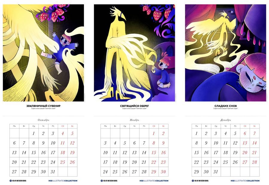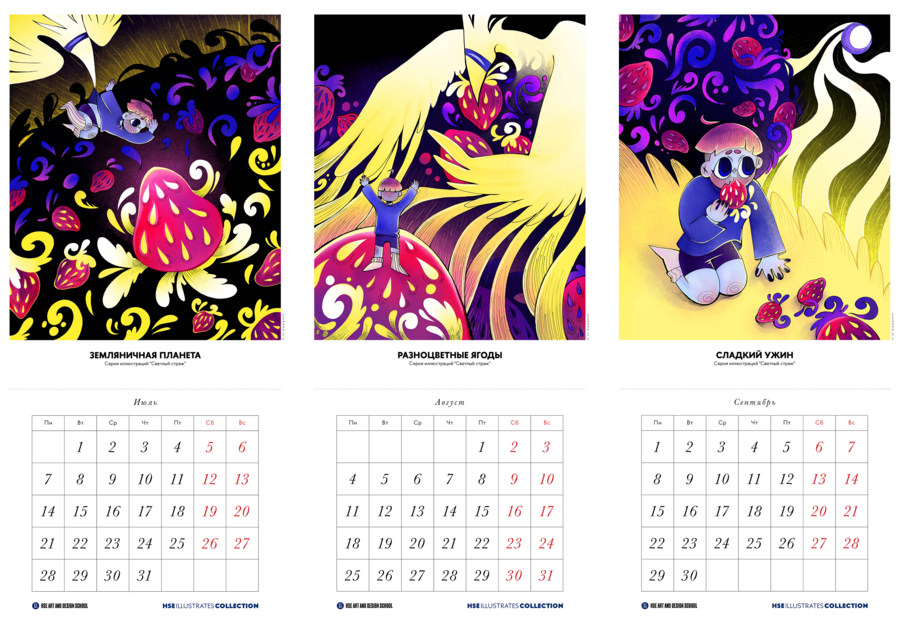 Жар-птице и землянике в иллюстрациях уделено особое внимание как наиболее часто встречающимся элементам в хохломском орнаменте.