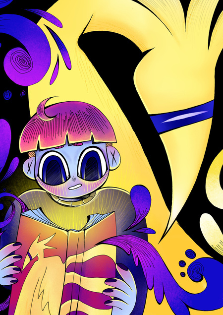Маленький Филька очень боится темноты, поэтому каждую ночь перед сном читает сказки. Его любимая — про жар-птицу, изворотливую и освещающую всё вокруг.