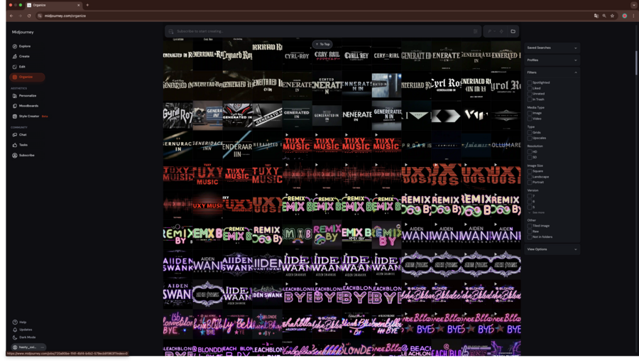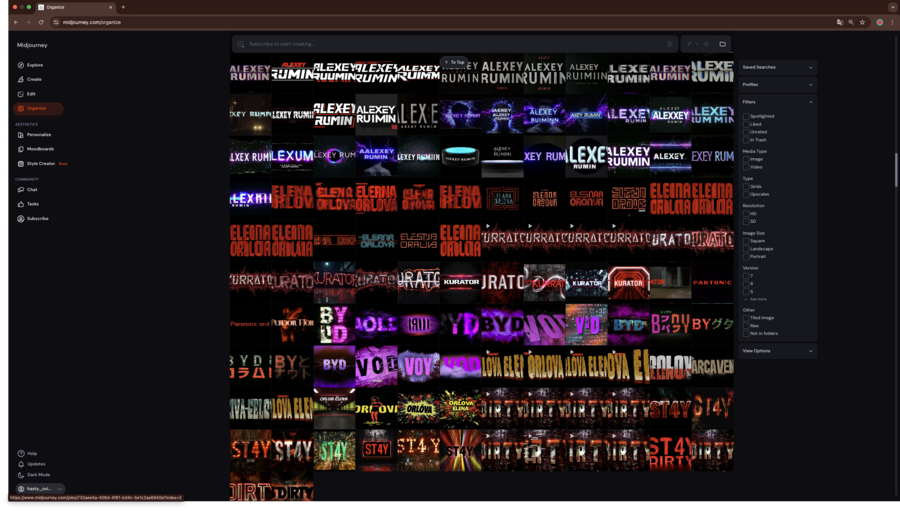 Титры реализованы с использованием генеративных инструментов Midjourney. Типографика создавалась через серию итераций с контролем формы, ритма и искажения.