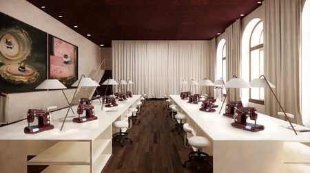 16 рабочих мест для швей 9 рабочих мест для художников по костюмам 12 мест свободного пользования