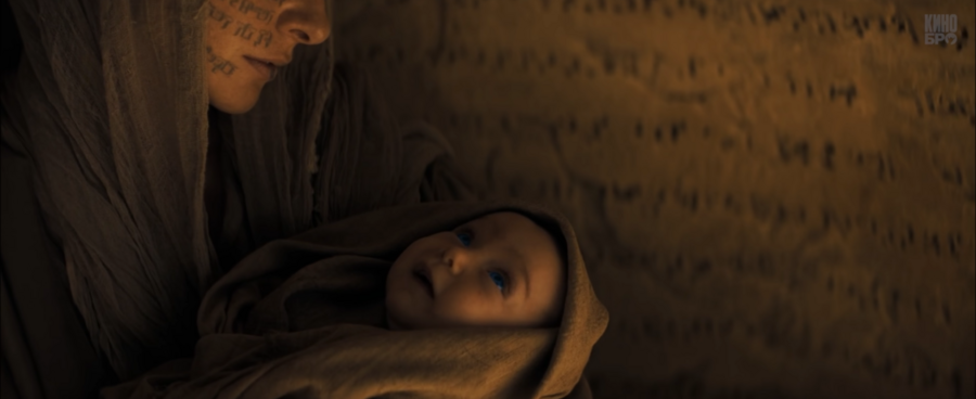 В «Дюне» Дэвида Линча 1984 года использовали схожий метод: «…синие глаза были достигнуты с помощью контактных линз с флуоресцентным покрытием, которые были подобраны для каждого из главных актёров и нескольких статистов-актёров офтальмологом из Праги (а на съёмочной площадке всё время, пока использовались линзы, находился специалист по контактным линзам). Эти склеральные линзы покрывают всю поверхность глаза.» [4]