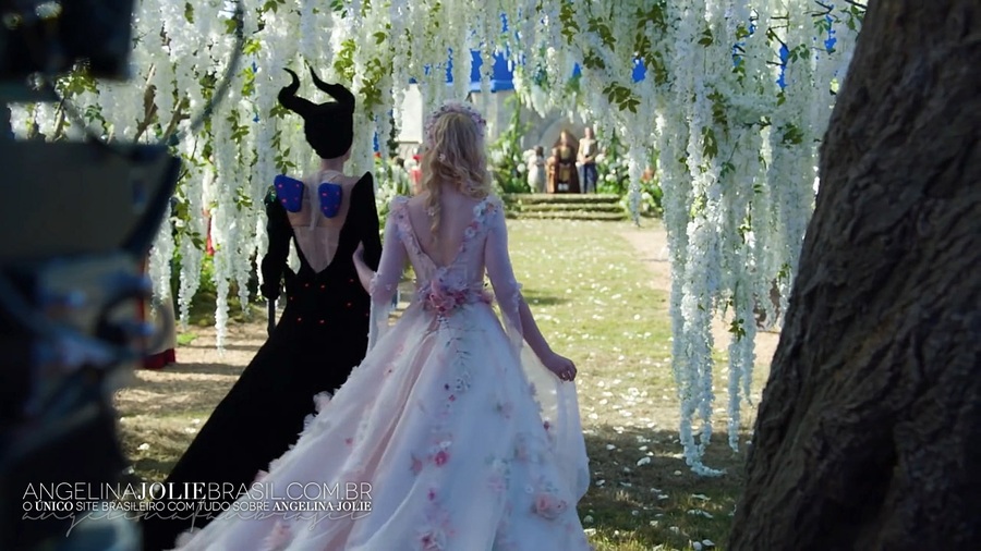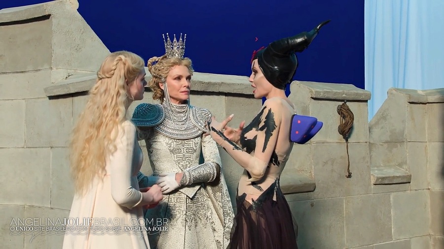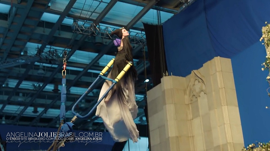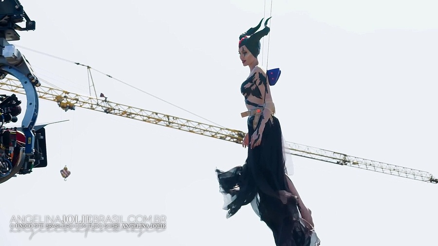 В «Малифисенте» крылья всегда цифровые, во время съёмок, актерам на спину крепили специальные накладки, а к ним липучки с датчиками, что было необходимо для дальнейшей компьютерной доработки.