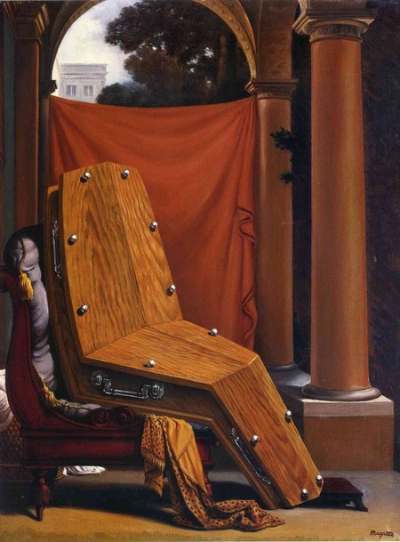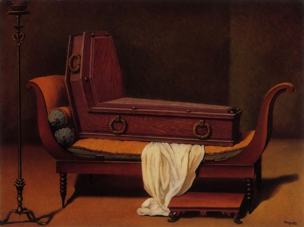 Гробы возлежат на кушетке в человеческой позе, становясь неотделимыми от тела, тем самым становясь частью телесности в работах Магритта. Но в то же время в связи с жанром камерного портрета не выражают душевных переживаний. Поэтому все же являются объектами. Их функция — демонстрировать замещение, то есть быть знаками/символами, показывающими конечность, бренность, пустоту того места, где обычно ожидался бы человек.