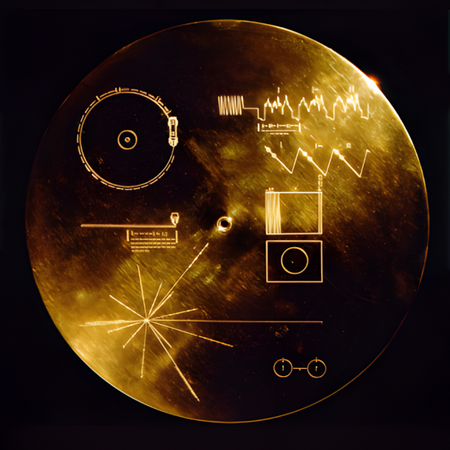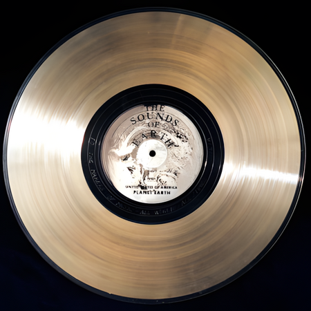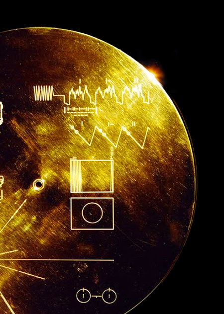 «Следуя примеру „Пионер-10“ и „Пионер-11“, НАСА поместило на борт „Вояджеров-1“ и „Вояджеров-2“ более амбициозное послание — своего рода капсулу времени, предназначенную для передачи истории нашего мира инопланетянам. Послание „Вояджера“ записано на грампластинке — 12-дюймовом позолоченном медном диске, содержащем звуки и изображения, отражающие разнообразие жизни и культуры на Земле.» [3]