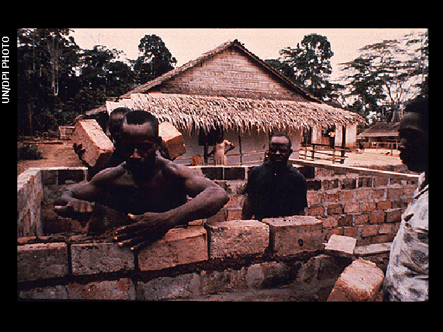 «Строительство дома (Африка)». UN/DPI Photo / Всемирный исторический архив. Алмазный рудник Де Бирс, около 1885 года