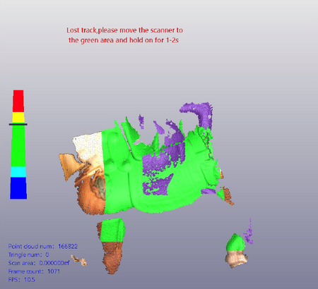 Image (on the left) shows a handheld scanning preview mode and Lost tracking during handheld scanning (image on the right), Romala Govender. 2023