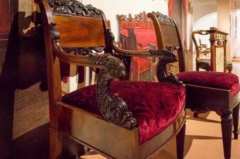 Фрагменты интерьерных деталей, характерных для дворцов Росси; Образцы ампирной мебели начала XIX века