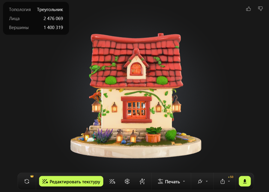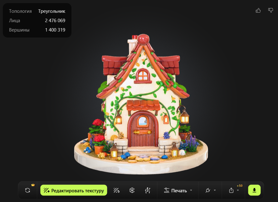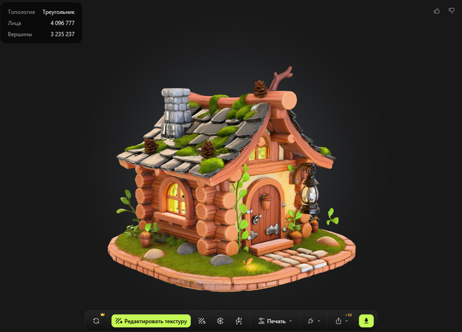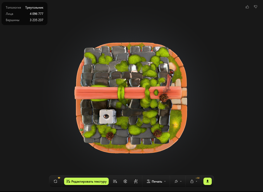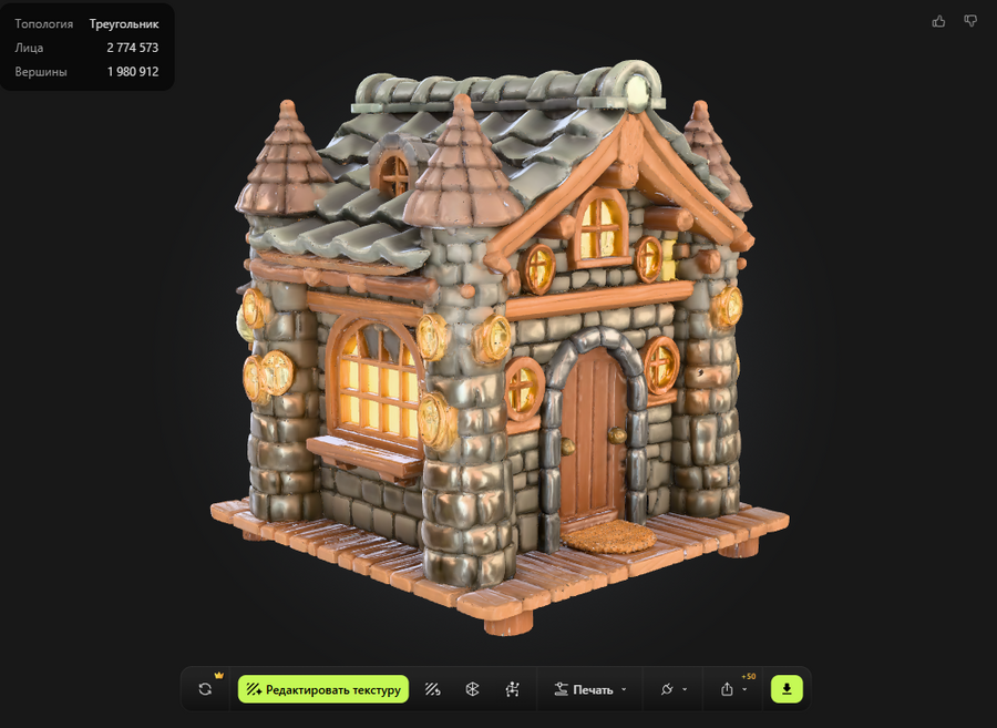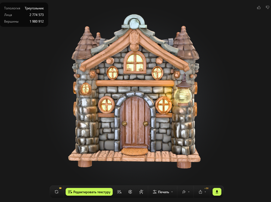 Геометрия и детализация: Формы моделей должны быть округлыми, без острых кромок и углов, имитируя изделия из полимерной глины или пластилина. Текстура материалов (стыки камней, волокна дерева, слои черепицы) должна быть глубокой и рельефной, чтобы она оставалась отчетливо видимой после финишной обработки и покраски.