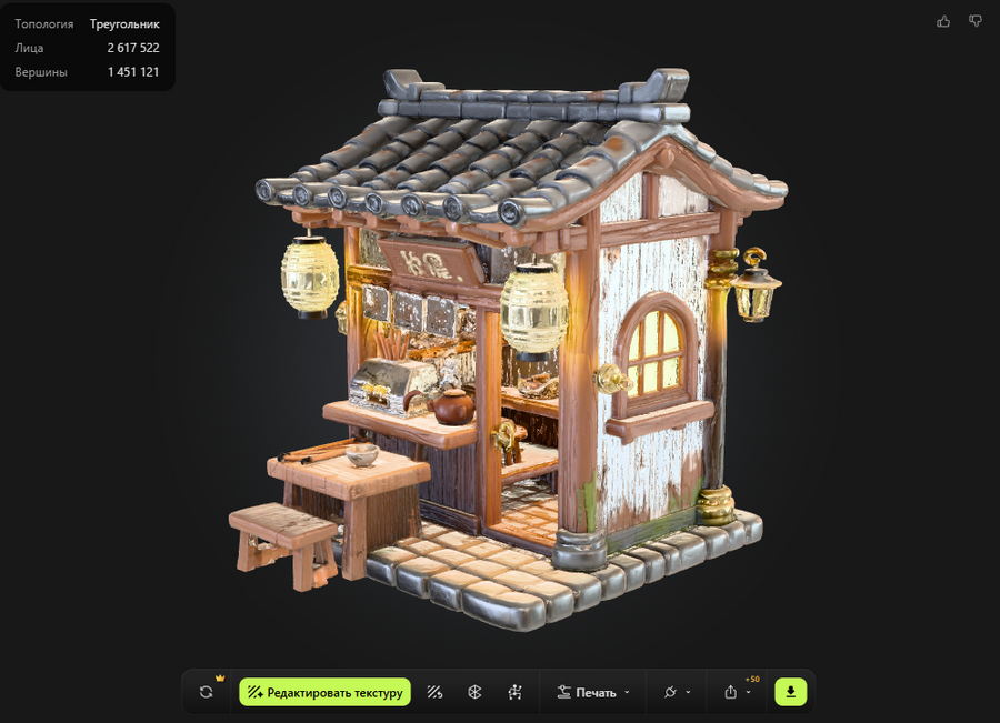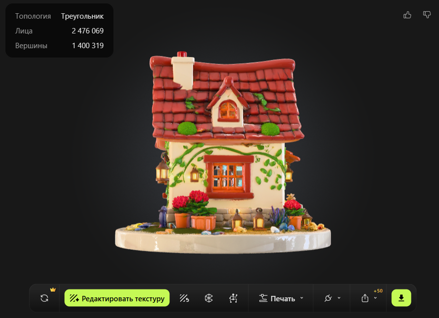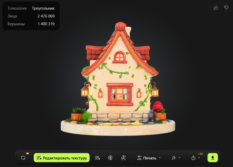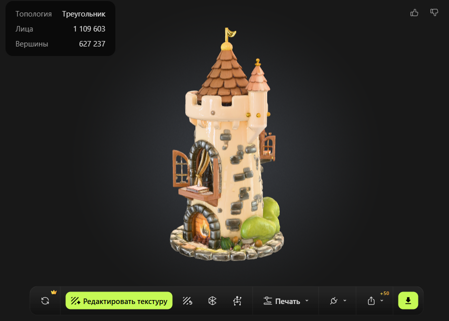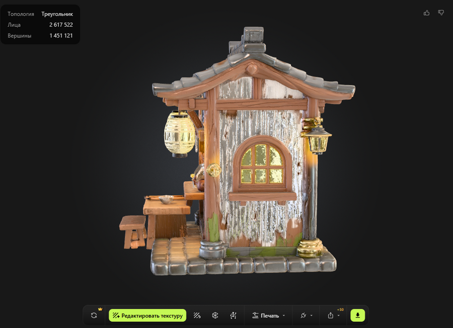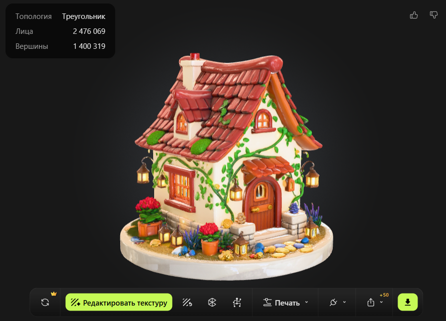 Геометрия и детализация: Формы моделей должны быть округлыми, без острых кромок и углов, имитируя изделия из полимерной глины или пластилина. Текстура материалов (стыки камней, волокна дерева, слои черепицы) должна быть глубокой и рельефной, чтобы она оставалась отчетливо видимой после финишной обработки и покраски.