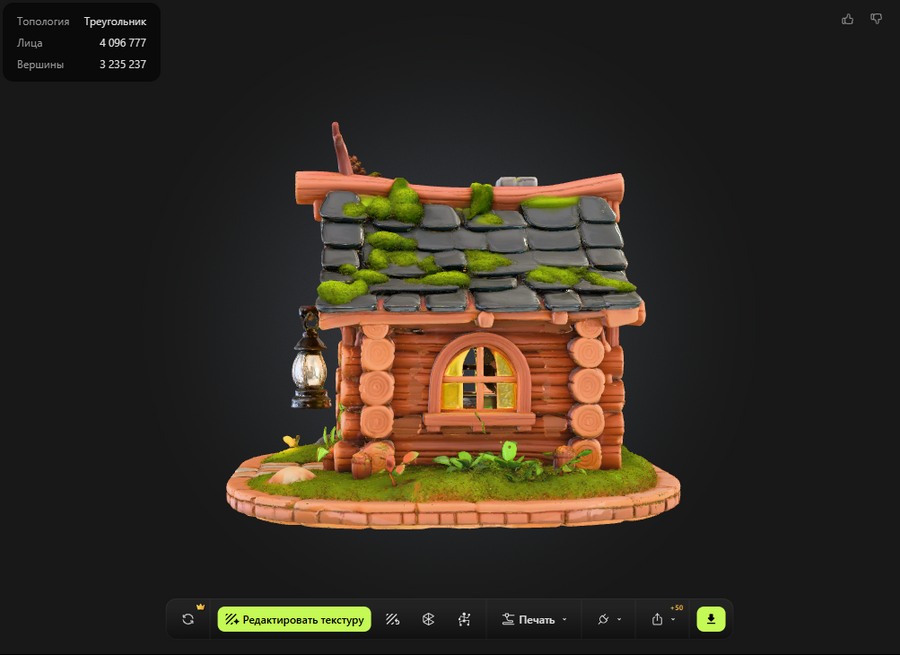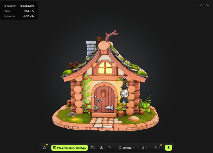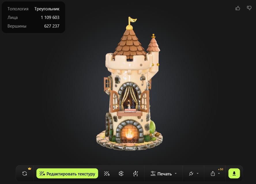 Постобработка и декор: После завершения печати требуется тщательное удаление всех вспомогательных структур и очистка модели от возможных дефектов ретракции («волосков» или наплывов). При необходимости выполняется минимальная ручная роспись акриловыми красками в технике «сухой кисти», чтобы подчеркнуть объем рельефа и добавить мелкие цветовые акценты (цветы, мох, огонь в камине).