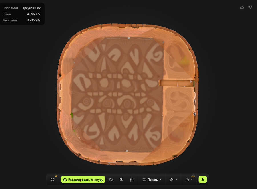 Материал и цвет: Для производства рекомендуется использовать пластик PLA или PETG. В качестве базового цвета лучше выбирать нейтральные матовые оттенки: слоновую кость, светло-песочный или светло-серый. Это позволит материалу лучше передать игру теней на рельефе поверхности и подготовить модель к последующему ручному декорированию.