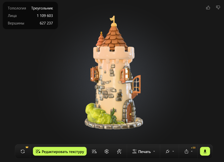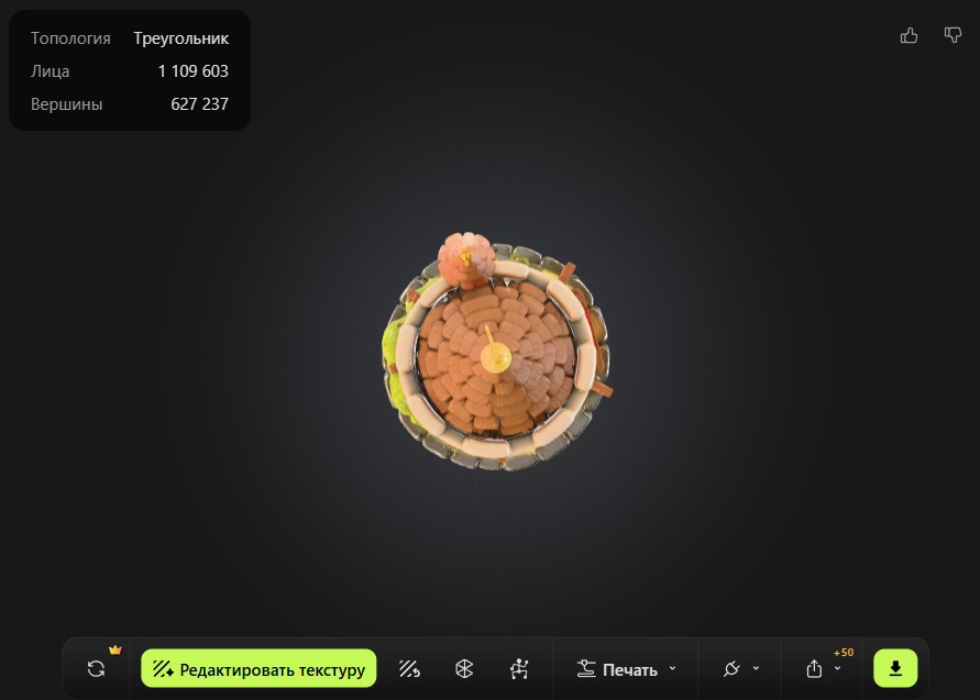 Проект был реализован через последовательное использование ChatGPT → Qwen/Gemini → Meshy.ai → MeshInspector.