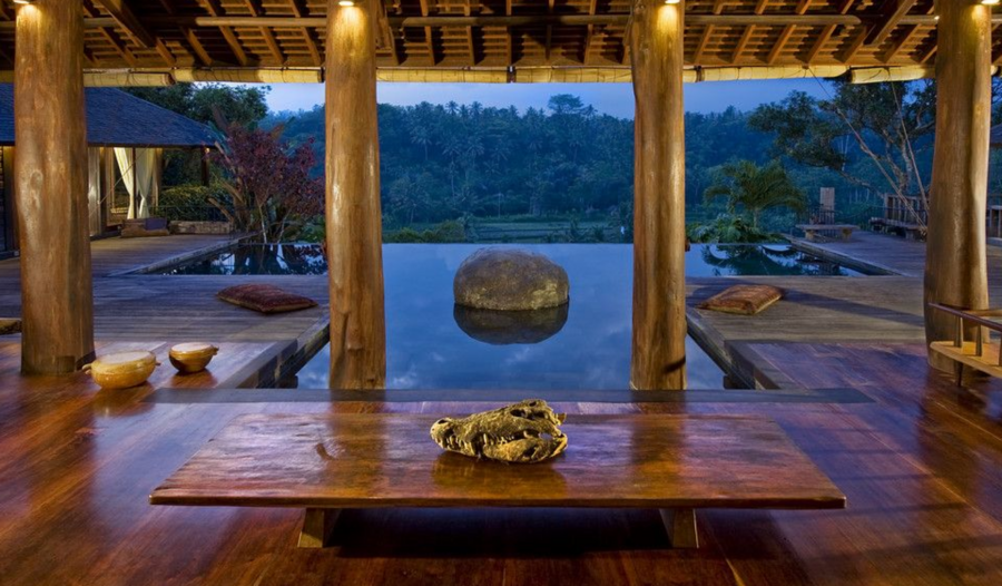 Интерьер современного дома, выполненного с использованием традиционных индонезийских конструктивных приёмов. Индонезия. Современное фото