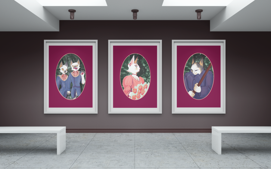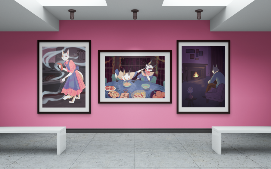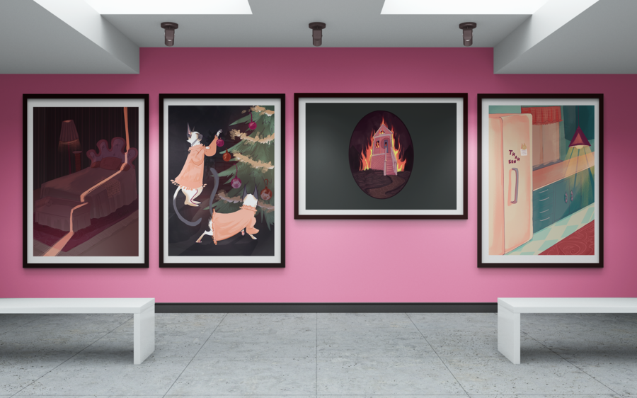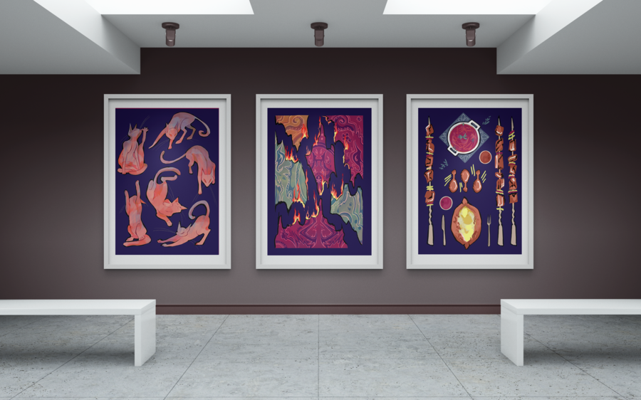 Серия иллюстраций для выставочной графики по мотивам сказки «Кошкин дом» С. Я. Маршака.