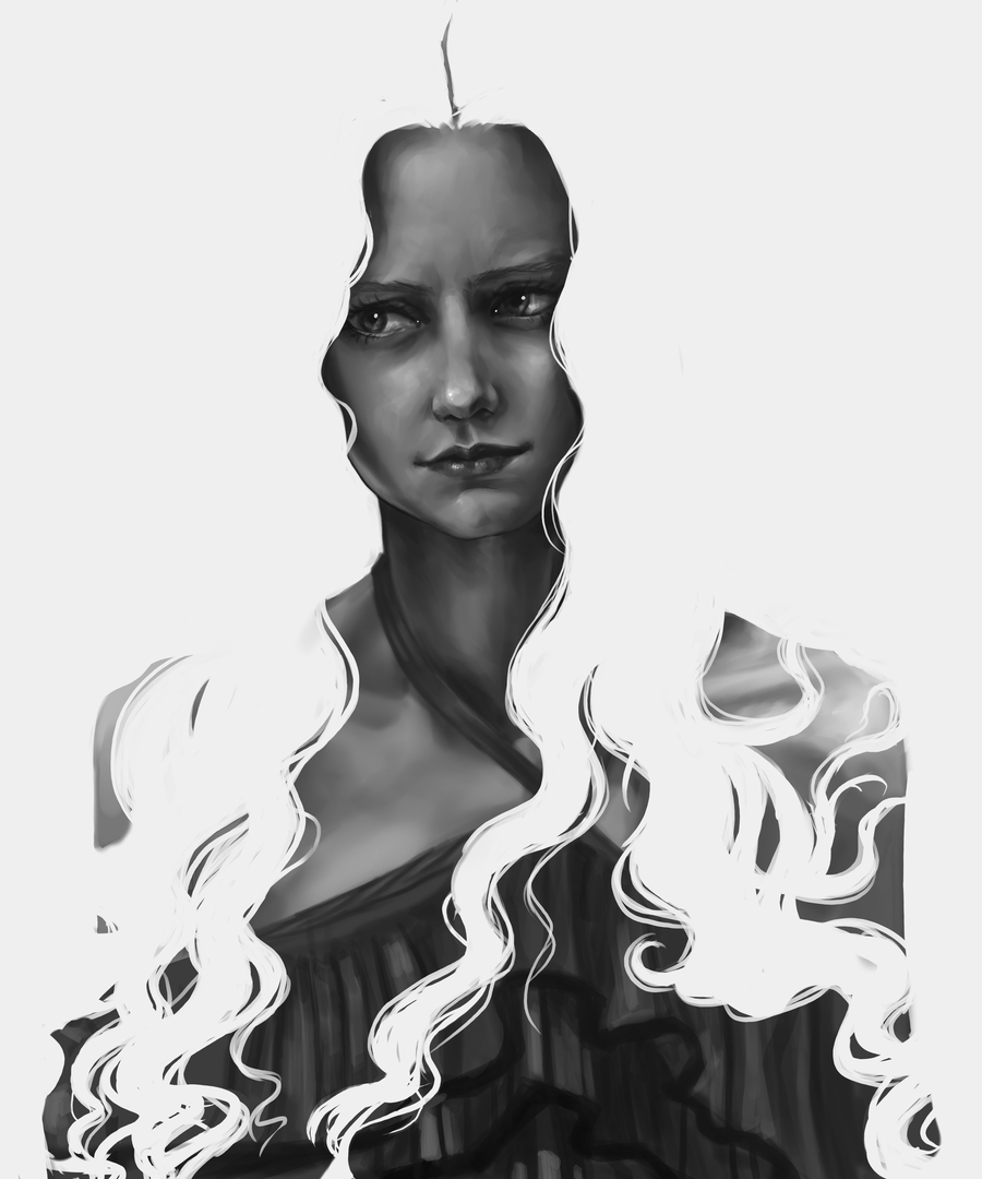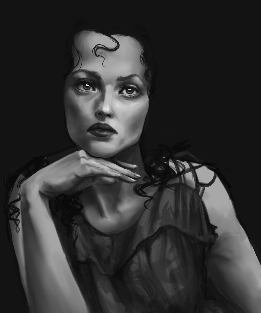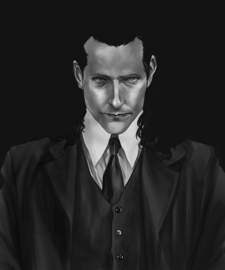 Серия портретов, вдохновленная фильмом Тима Бёртона «Алиса в стране чудес». В своих работах, я решила сделать ключевой акцент на лицах актеров, сделав их максимально живописными, в то время как фон залит одним пятном. Помимо этого, было решено использовать монохромную гамму, что помогло лучше проработать силуэты актеров, к тому же, в сказках часто всё принято делить на черное и белое, а такой «монохромный» метод помогает раскрыть иную сторону — не всё так однозначно, во всем есть множество тонов, нет только черного или только белого, зачастую, всё гораздо глубже и страннее.