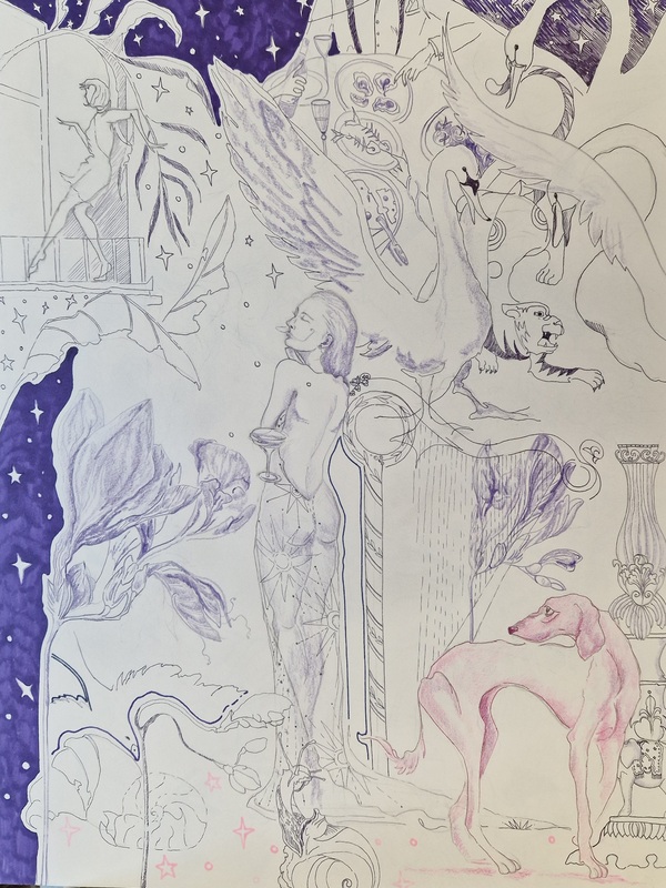 Каждая авторская графика- это симбиоз человеческих образов с животным и растительным миром. Именно в цветах и животных Татьяна всегда видела отпечаток бога. — Человек не венец творения, а частичка единого целого, вместе с природным и растительным миром. -Звездное пространство на ее работах — это бескрайние возможности, подаренные нам вселенной. - Я долго занималась живописью, но только придя к графике я смогла объединить свои идеи и перенести их на бумагу. В работе я использую карандаши, маркеры и акварель — они придают моим работам легкость и прозрачность, так как глубину дает именно задумка и идея. -Основной и главный цвет в работах — синий, он олицетворяет собой доверие к этому миру, умиротворение и так-же поиск себя. Следующие по важности цвета — фиолетовый и розовый, как олицетворение фантазийности, уникальности и наивности.