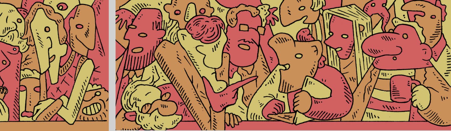 По задумке панели при открытии наслаиваются друг на друга, соединяя контурную иллюстрацию и цветной паттерн в единый образ.