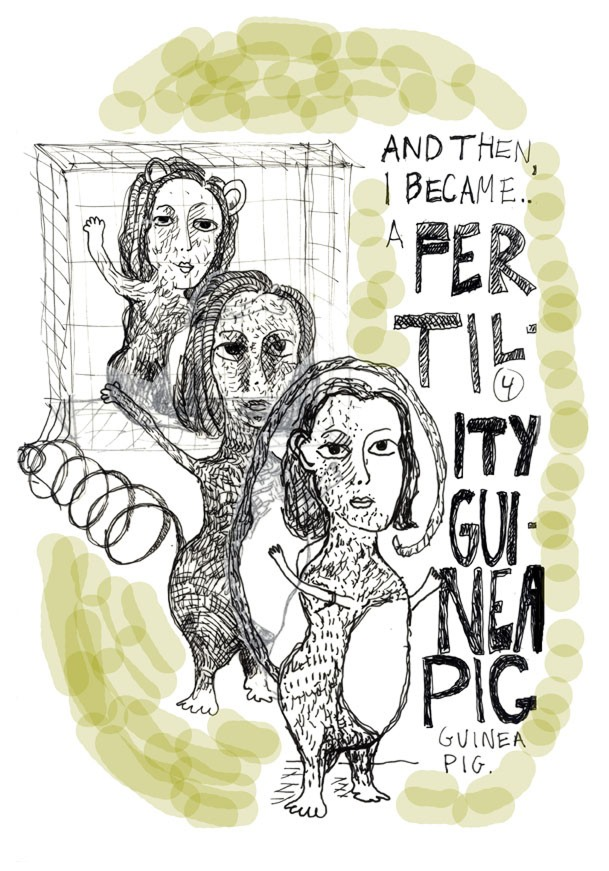 Прямое превращение в «подопытную морскую свинку фертильности», выходящую из клетки-клиники, — это метафора дегуманизации, потери контроля и собственной объективации в процессе лечения.
