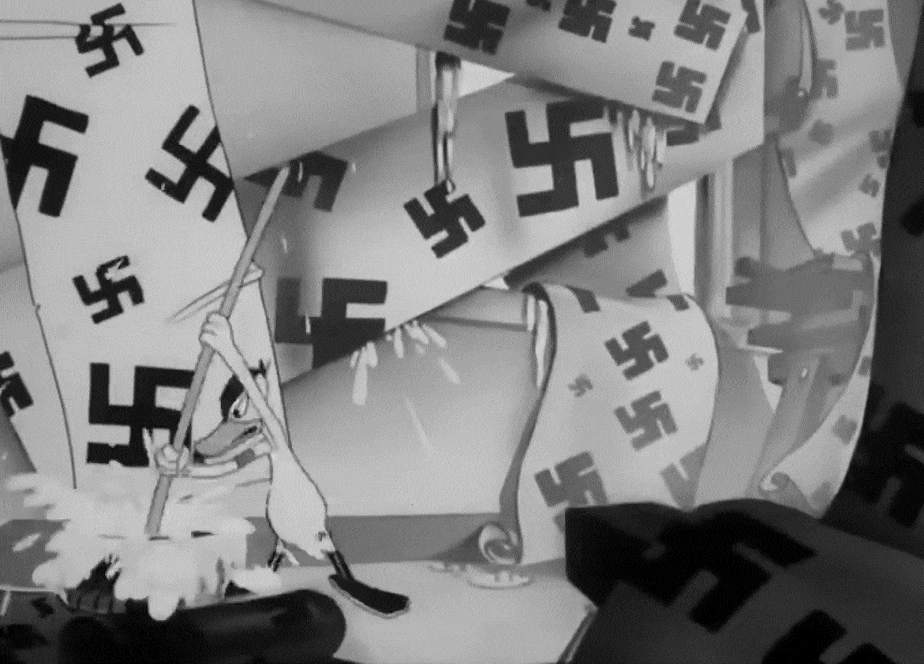 Карикатура на Гитлера быстро стала одним из центральных визуальных инструментов военной пропаганды: анимация преувеличивала его жесты, манеры и внешность, превращая политического деятеля в комического злодея. Кроме того, появление звука позволило использовать озвучку, карикатурно пародируя речь диктатора. Гротеск и карикатуры уменьшали страх перед врагом, превратив Гитлера и его союзников в смешных и слабых персонажей. Это был хорошо продуманный политический ход: высмеивание устраняет угрозу, способствует национальному единству и укрепляет чувство морального превосходства.