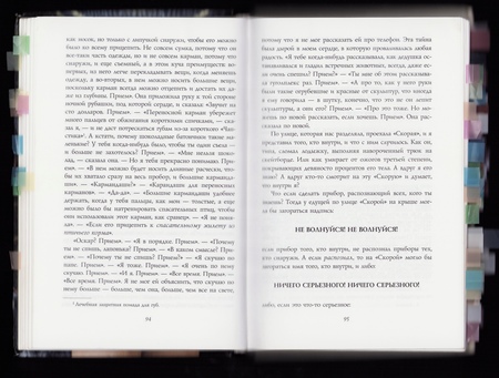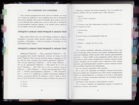 • это больно? • тебе видно? • что случилось? • оставьте сообщение на автоответчик • можно ли стараться запредельнее? • прости • все равно прости • который час? • сколько пальцев я показываю? • все-таки прости •