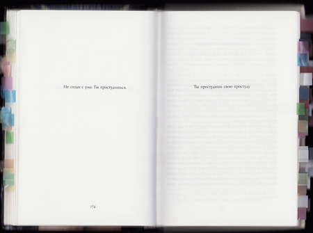И думаю именно по этой причине писатель не боится совмещать в своих книгах прозу и поэзию, визуальные ряды, игру с типографией и пустотами и др. Он не думает заранее о потенциальной значимости и смысле произведения, а скорее пытается передать всеми возможными методами свои ощущения читателю.