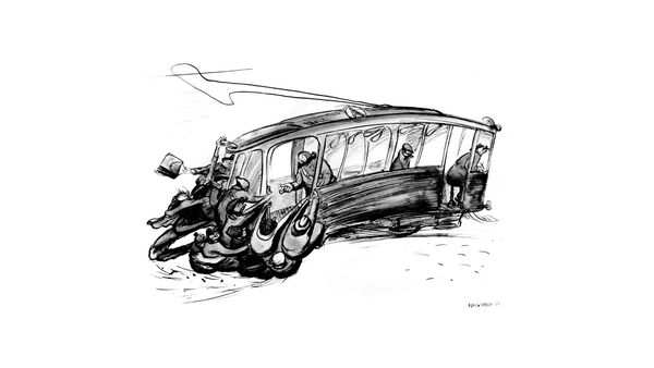 Помимо живой стилистики рисования художниками находится также и диагональная композиция, которая станет основой их стиля и будет прослеживаться в дальнейшей карьере. Диагонали позволяют сделать композицию не только динамичной и драматичной, но и акцентируют на разности масштабов объектов иллюстрации, что пойдет на руку в политических шаржах.