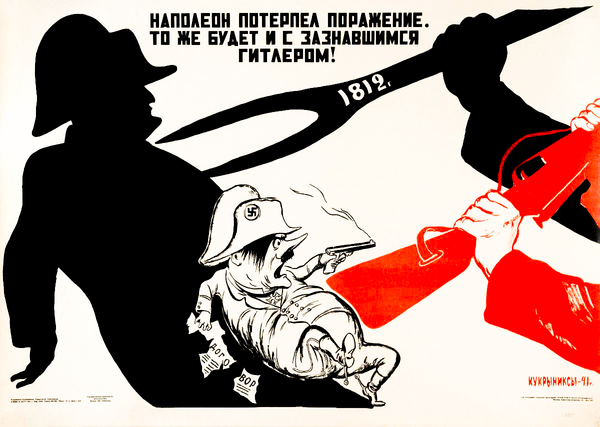[1] Кукрыниксы, «Наполеон потерпел поражение, то же будет и с зазнавшимся Гитлером!», 1941 г.; [2] Кукрыниксы, «Здоровая тень больного Кальтенбруннера», 1946 г.