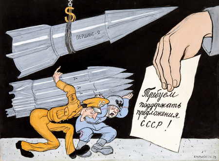 [1] Кукрыниксы, «НАТО. Пентагонка под одну машинку», 1977 г.; [2] Кукрыниксы, «Боеголовки НАТО», 1977 г.
