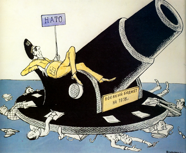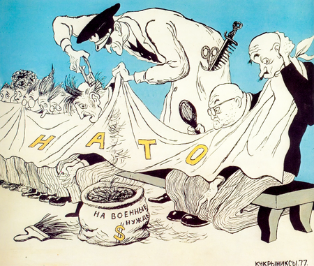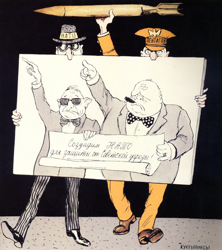 [1] Кукрыниксы, «Войной чревато, в том сущность НАТО», 1978 г.; [2] Кукрыниксы, «Создатели НАТО», 1980 г.
