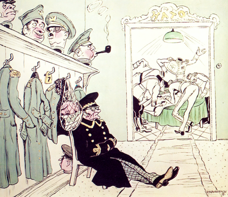 Карикатуры послевоенного периода отличаются чуть большей статикой, детализацией и сдержанным гротеском и цветом, по сравнению с военным, но в то же время они не теряют своего ехидного обаяния. В силу этого эмоциональный градус у них ниже. Методы построения сатиры становятся менее прозаичными, имеют свое усложнение и изворотливость, но остаются понятными для рядового читателя.