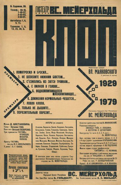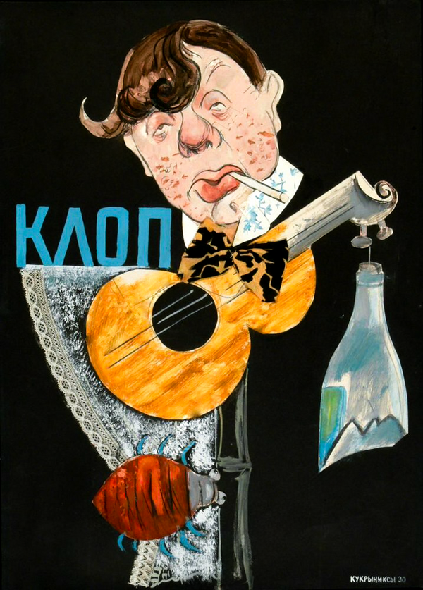 [1] А. М. Родченко, афиша к постановке «Клоп», 1929 г.; [2] Кукрыниксы, плакат к постановке «Клоп», 1929 г.