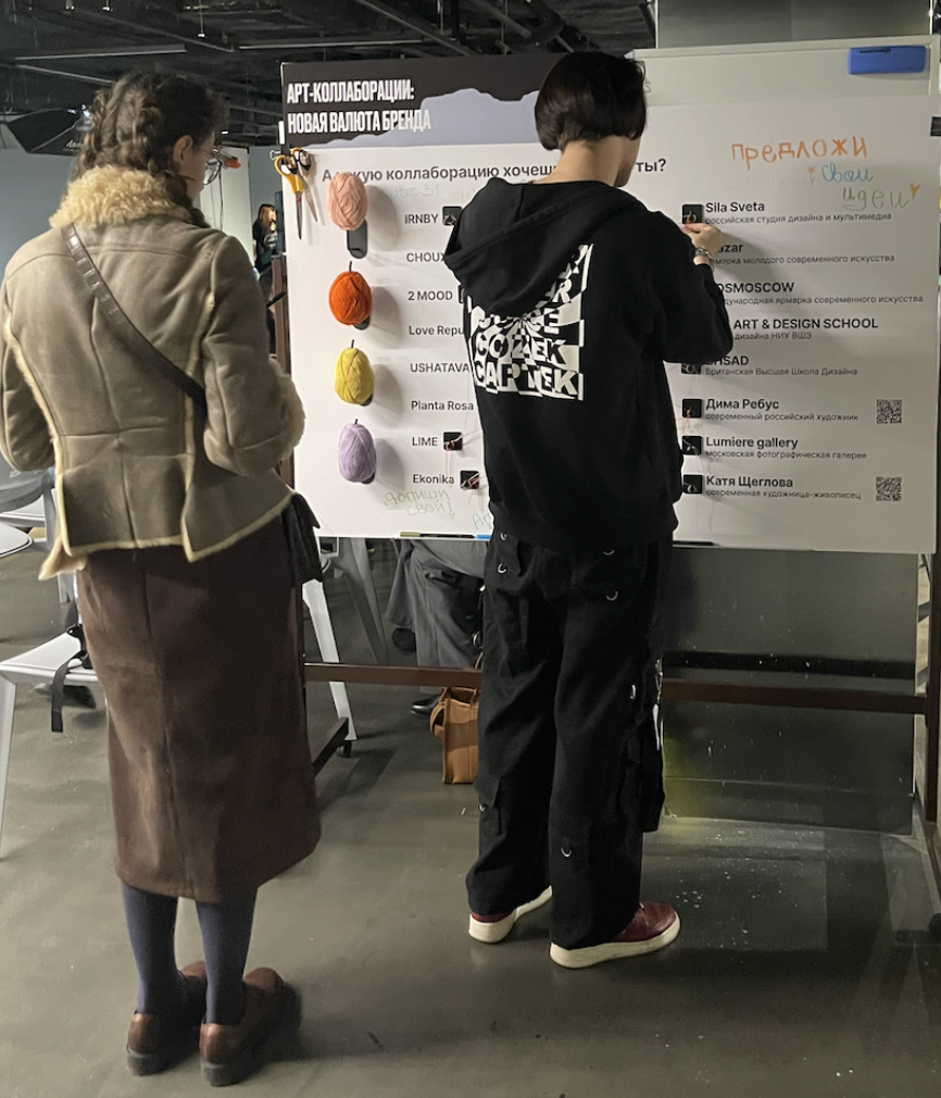 Интерактивный стенд на выставке в «Цветном» вызвал большой интерес и высокую вовлеченность посетителей. Помимо готовых вариантов для коллабораций, которые мы предложили, мы также предоставили гостям возможность самостоятельно предлагать бренды для партнерства.