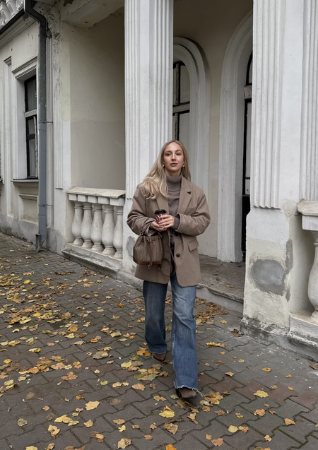 «Это будет что-то определенно объемное. Вижу фисташку, горчицу, сливу. Совсем не вижу в приоритете у людей белого и черного. Хочется больше сложности, чтобы глазами хотелось рассматривать. Возможно какие-то странные или даже нелепые принты. В нашем городе огромное количество стильных людей с разным видением. Из базовой вещи они делают что-то уникальное. Также изделия местных ремесленников можно часто встретить на улицах города.» — Таисия.