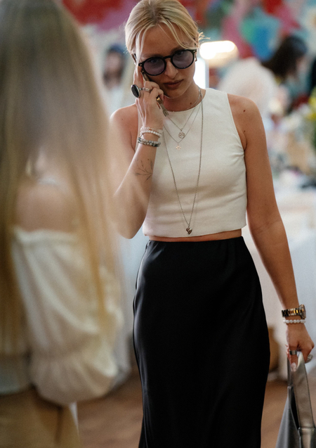 «В центре, где я живу, много зелёного и природного, среди живого хорошо. Небольшой город позволяет жить в пешем режиме, не бежать белкой в колесе по всем делам, ловить моменты здесь и сейчас. Думаю, благодаря этому я чаще одеваюсь нарядно или по-деревенски небрежно, ведь одежда не нужна для того, чтобы пережить этот день», она может отражать меня и моё состояние. " — Вера.