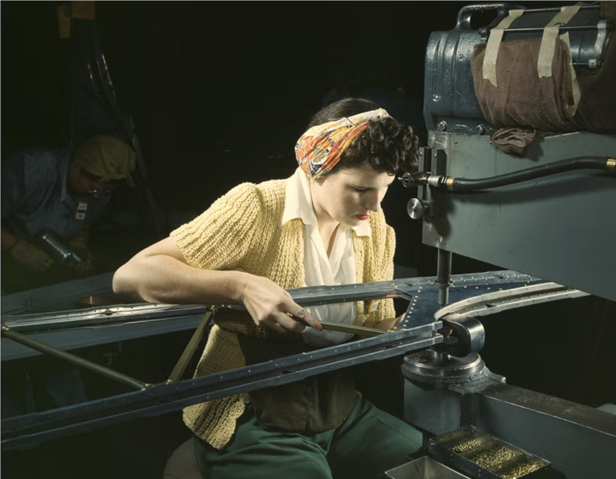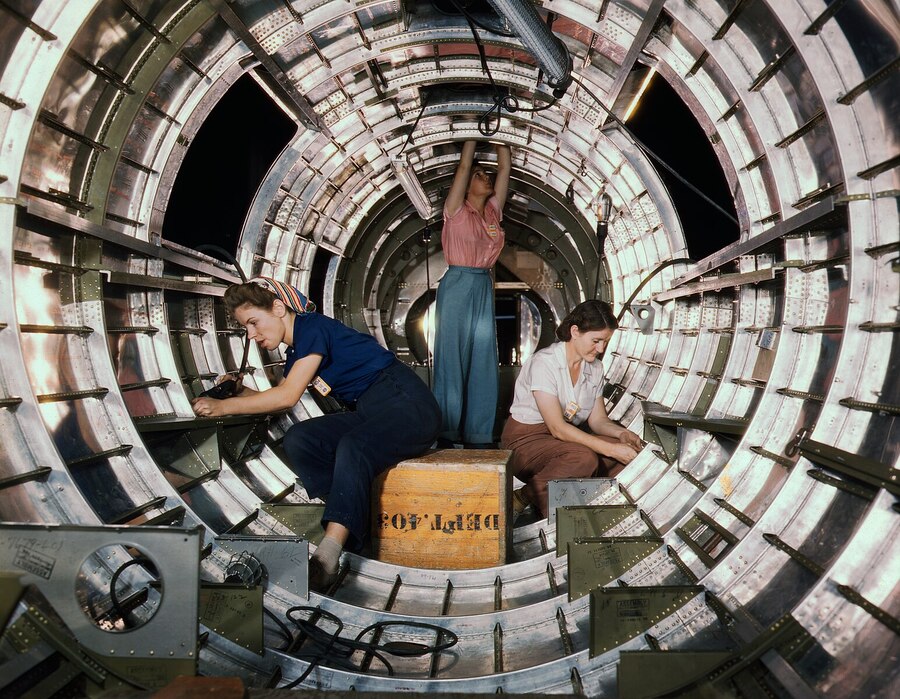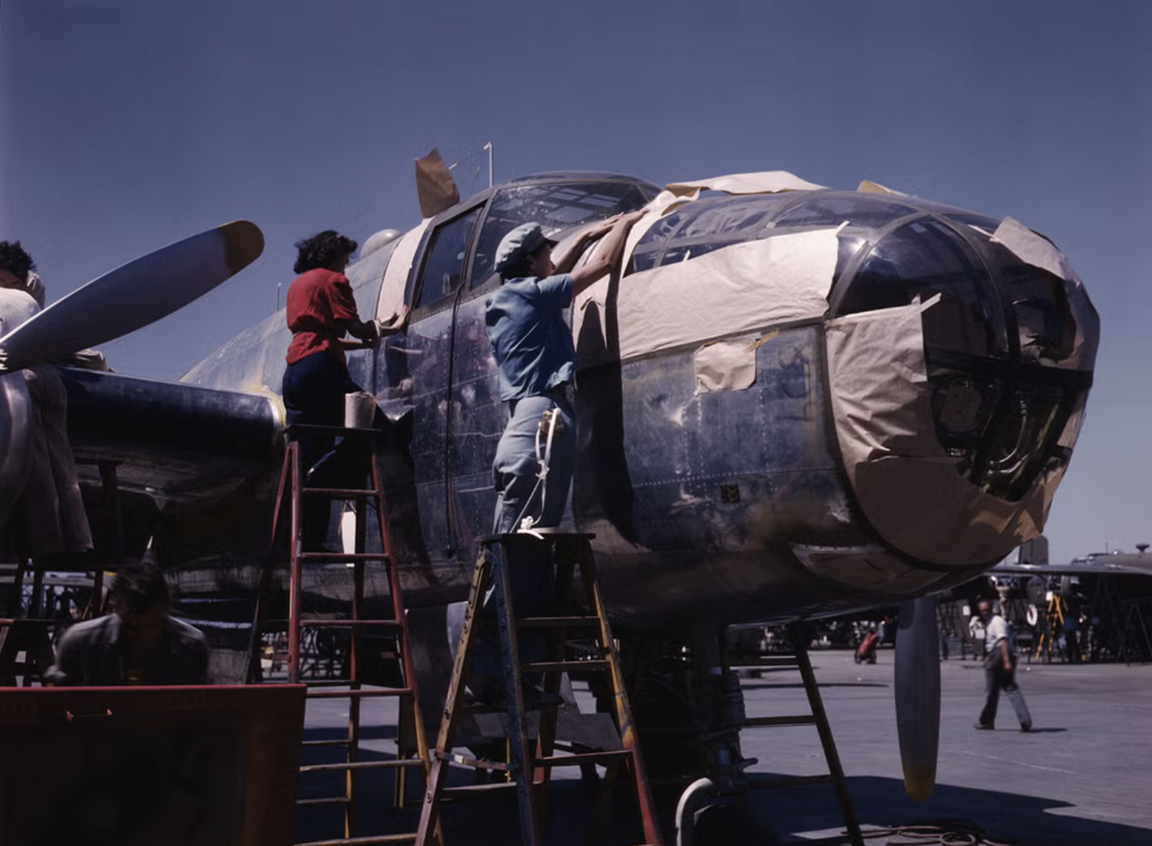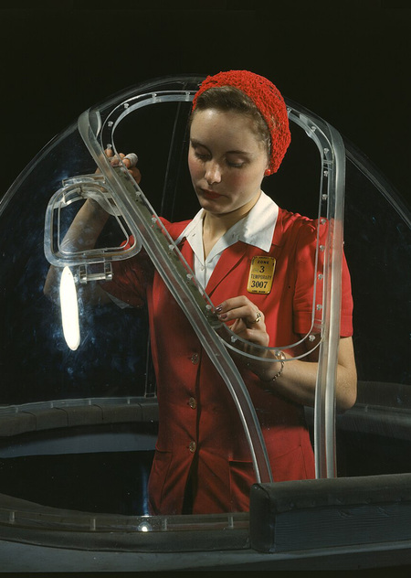Работница завода Douglas Aircraft Company собирает плексигласовую кабину «Боинг В-17 Летающая крепость» / 1942 г.