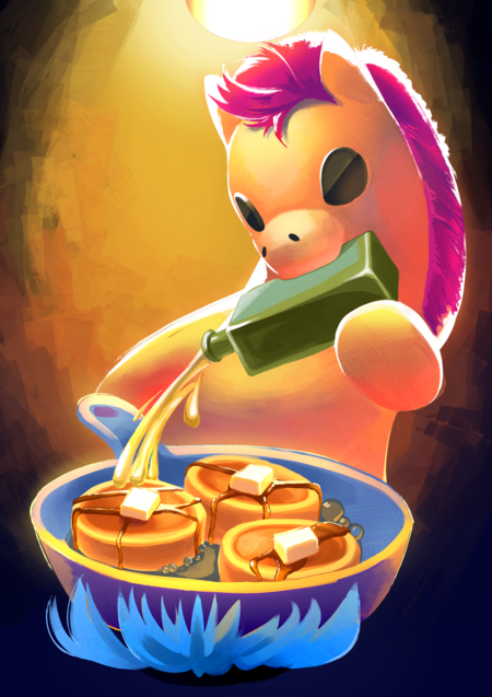 В марте маленький Мочи размешивает банановый милкшейк, Морин в апреле жарит панкейки