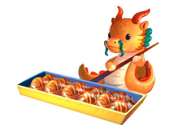 Февраль все еще очень холодный. В этом месяце дракон Лу любит растапливать печь и запекать круассаны.