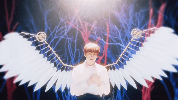 Центральным символом клипа становится Хюнин Кай (младший участник группы) в ангельском образе. Он кроткий и ранимый хранитель обещания, данного всеми пятью участниками («Завтра — вместе»). Его крылья, стилизованные под механические конструкции эпохи Возрождения создают специфическую эстетику уязвимости: механический, почти неудобный ангельский аппарат делает образ несовершенным и тем самым глубоко человеческим. Этот мотив укладывается в логику прекрасного, о которой пишет Кант: истинная красота не в совершенстве формы, а в способности вызывать бескорыстное благоволение. Ангел TXT прекрасен именно в своей слабости: он сияет, когда касается сердца, вспоминая о друзьях, и именно память о связи делает его способным «лететь».
