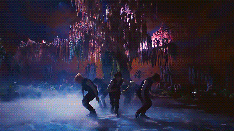 Вода соединяет участников в одном мире, очищает от страхов и позволяет перейти в пространство фантазии. Здесь прекрасное TXT приобретает новую форму — прекрасное как совместный акт воображения, где коллективная юность пересиливает внутренние разломы.