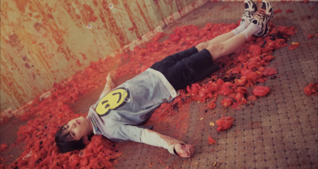 Дом, где происходит действие, одновременно кажется обыденным и тревожно искажённым. Радостные сцены дружбы чередуются с отстранённостью и жестокостью. Томаты, пачкающие одежду, превращаются в символ публичного унижения; клубника — в знак боли и порочности; беспорядок — в визуальную форму хаоса. Возвышенное по Канту вызывает «приятную тревогу», и TXT формируют именно такую эмоцию: зритель ощущает неладное, даже когда клип показывает улыбки.