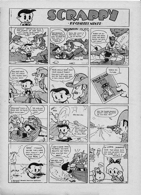 (A) Original animated Scrappy design from early Charles Mintz/Columbia Pictures shorts, c. 1932. (B) Comic-strip adaptation of Scrappy published in the late 1930s