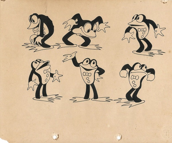 (A) Flip The Frog Character production drawing by Ub Iwerks, 1930 (B) Restyled version for a later audience, late 1930s