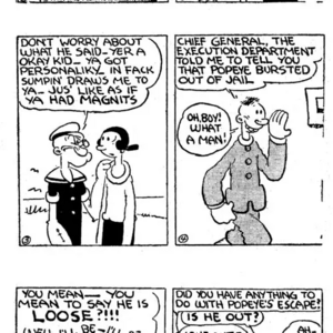 Popeye in Thimble Theater, the comic strip created by Elzie Crisler Segar where the character first appeared in 1929