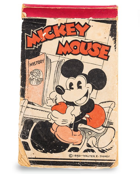 (A) Mickey Mouse Writing Tablet — officially licensed piece of Mickey Mouse merchandise, featuring, 1930 (B) Hake’s 1934 retailer catalog — collections of licensed Mickey Mouse merchandise, 1934